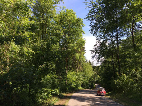 Os noticiários deram tempo muito mau por toda a Europa. Na Alemanha, a umas dezenas de quilómetros, caíram enormes chuvadas, tempestades, trovoadas, até gelo caiu do céu causando inundações... Só onde nós estivemos, nesta zona, o tempo esteve esplêndido todo o dia. Não apanhámos uma única gota de água. Grande sorte!