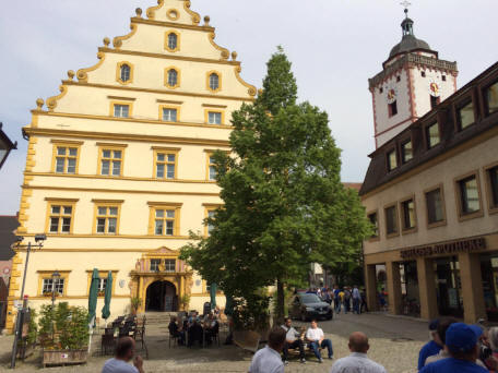 ---------------------------------------------- Estamos em plena região de vinhos da Francónia. Parámos numa aldeia que praticamente era tudo Adegas. Todas elas a oferecerem os vinhos para provar e para comprar. São vinhos brancos, muito apreciados, e vendidos em garrafas de botija. É uma forma de garrafa protegida, que só é permitido ser usada na Francónia. Até já originou um litígio com o Mateus Rosé. O processo chegou a bom fim pois o Mateus conseguiu provar que não era cópia e que era comprovadamente diferente.