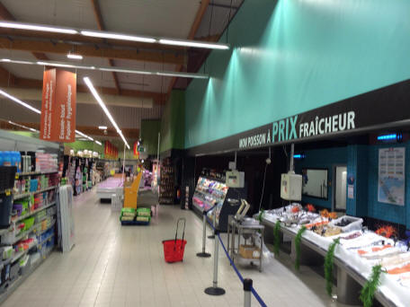 Hoje tive um dia de condução aquática: só chuva, chuva, chuva! Bastante vento de frente, e camiões a passarem, levantando mais água ainda. O piolho lá se foi aguentando. Portou-se muito bem. Por vezes abanava pela frente, e por tráz parecia fazer a dança da abelha. Nem meteu muita água ( ou eu ainda não a vi). Mas parece que pelo tejadilho não está a entrar nada. Pelos ventiladores laterais é que vai pingando qualquer coisa. Parei á tarde para meter gasolina no Inter Marché. Falta de gasolina não há. Aproveitei para fazer umas compras de "comes e bebes". Achei estranho não ver lá gente nenhuma àquela hora. Parecia estar sozinho (ver foto). Explicaram-me que era por ser fim do mês. Será verdade? Enfim, lá segui viagem para fazer mais uns quilómetros. Desisti em Gueret, com 391 Km percorridos, e meti-me no hotel "Premiere Classe". Estou bem instalado, mas o carrito continua á chuva. Espero bem que o tempo amanhã melhore! ---------------------------------------------- 31/05/2016 Ontem já passei o dia todo á chuva. Pensei que hoje virasse para melhor, mas não. Resolvi ficar no hotel "á espera". É que de facto andar com o carrito á chuva, além de ser mesmo fatigante, acaba por ser um verdadeiro perigo. Não se vê nada. O limpa pára-brisas não limpa nada. Os vidros todos embaciados. O da frente ainda posso ir limpando á mão, mas para trás não vejo mesmo nada, nem pelos vidros nem pelos espelhos retrovisores. Quando passa um camião, parece que estou numa estação de lavagem automática, com rajadas fortes laterais. O carrito tem-se portado bem, não há dúvida, tem conseguido manter-se na direção sem resvalar nos ribeiros que os camiões fazem no piso. Mas a água, quando é muita, não perdoa. Resumindo: atirei-me á estrada por volta do meio dia, e já desisti ás 17:00 horas, em Angoulême com 197 Km feitos. Quiz descansar, mas verifiquei que tinha entrado muita água por vários sítios. Tudo o que estava no chão, ficou encharcado, o tapete ensopado. Entreti-me a tirar a tralha toda cá para o quarto do hotel para ficar a secar até amanhã. No interior do carro limpei e apanhei a água. Agora, mais cansado estou e vou-me deitar. Até amanhã!