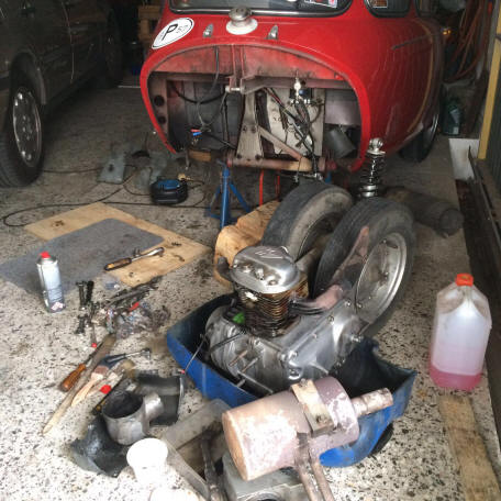 ------------------------------------------------ 29/04/2016 Encontrei estas fotos num album "dos antigos". É em Munique, o meu irmão, e o puto é o meu sobrinho. 1958 veio a família para Lisboa passar férias. Sem Auto-Estradas, cinco dias, o puto a dormir enrolado sobre o motor. O carrito aguentou, sem avarias, sempre a andar. Será que o meu agora também vai aguentar?