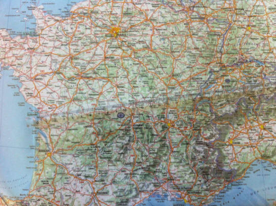 A régua aponta para 22cm = 660km. No entanto, pela estrada, com as curvas, devo chegar aos 800 km, passando por Poitiers, Chateauroux, Bourges, Autun, Beaune, Besançon, Neuchâtel BERN. O objetivo é de visitar a minha mana, que vive em Zollikhoven/BERN. Palpito levar para esta etapa uns 3 dias. Pois, atravessar a França ( na horizontal ) de Poente para Nascente, torna-se bastante maçador. São vias de circulação secundárias ( não dirigidas para Paris) e, como tal há que ganhar terreno aos Ziguezagues. Perde-se muito tempo, e gasta-se muitos quilómetros á procura do rumo certo. Mas enfim: Tem que ser!